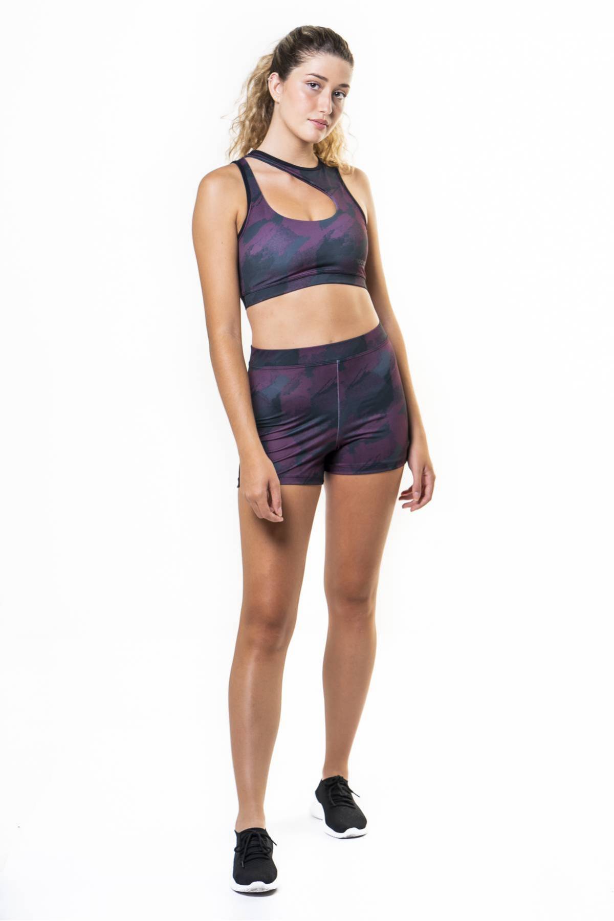 High waist fitted shorts with rubber bands and a 5 cm wide waistband. Cut to groin height. No side seams for ease of movement and comfort. Printed in maroon or gray color and option of smooth. Detail in vinyl with the MOOVE logo.